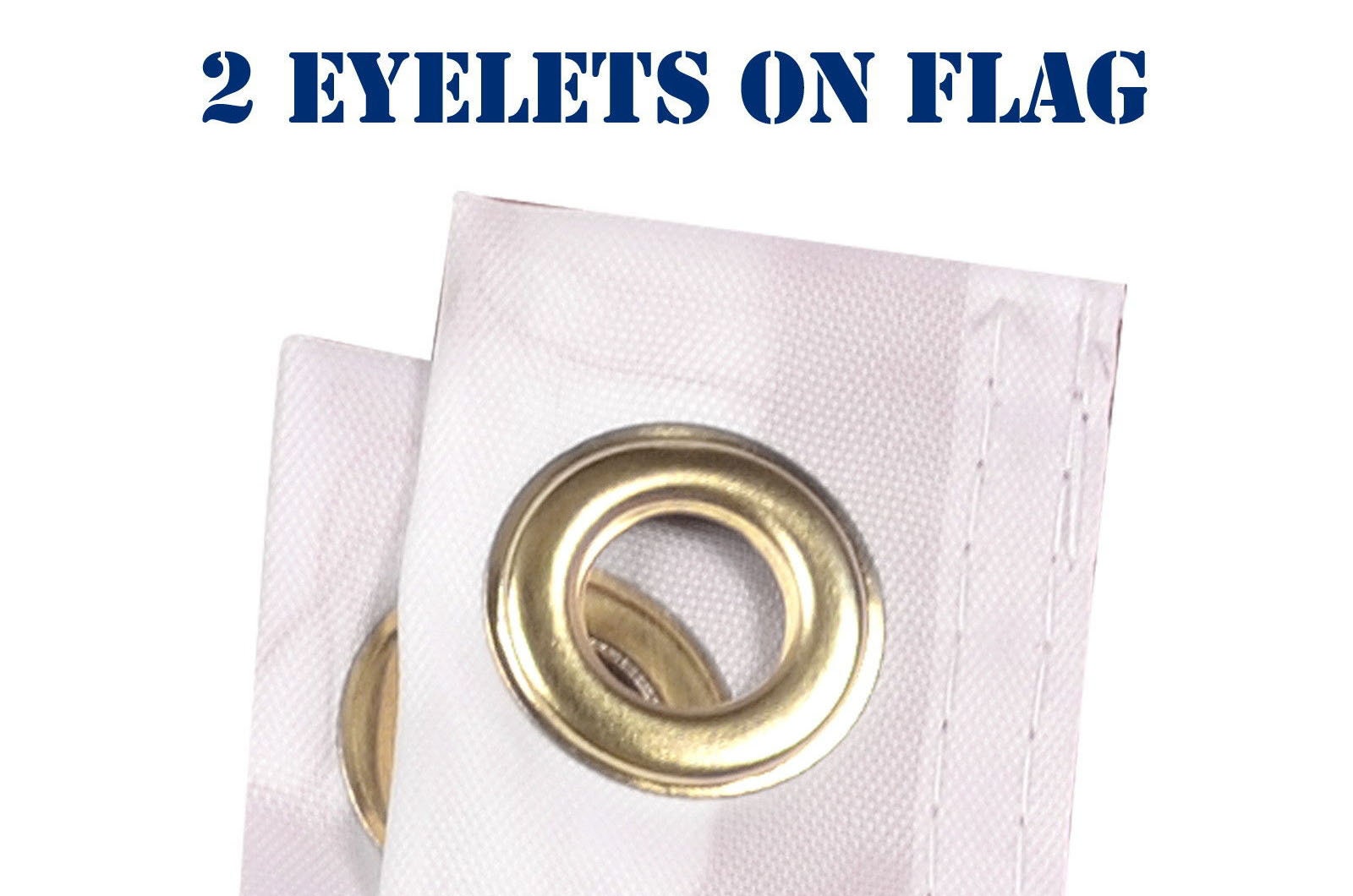 The flag also has two grommets on one end and has extra sewing around the edges for extra durability.