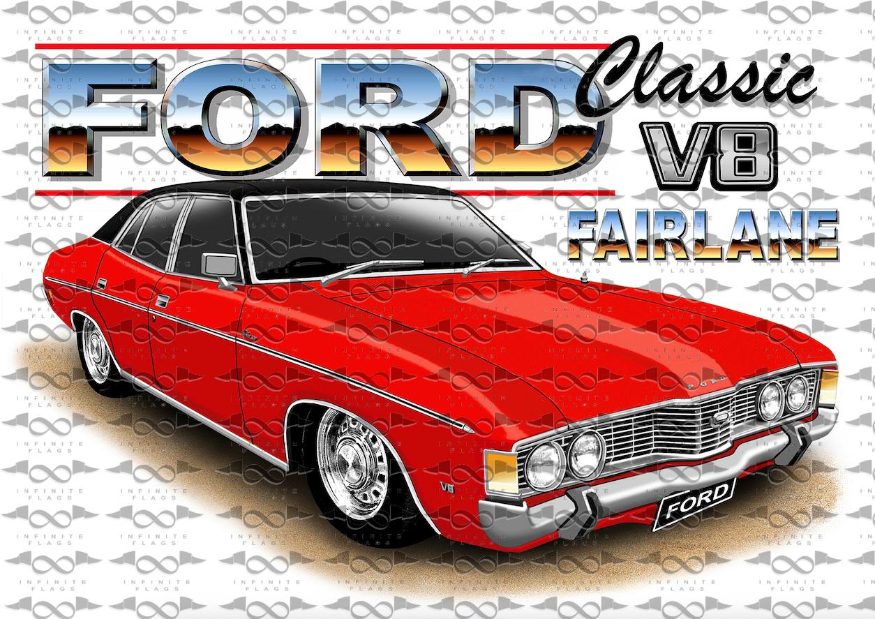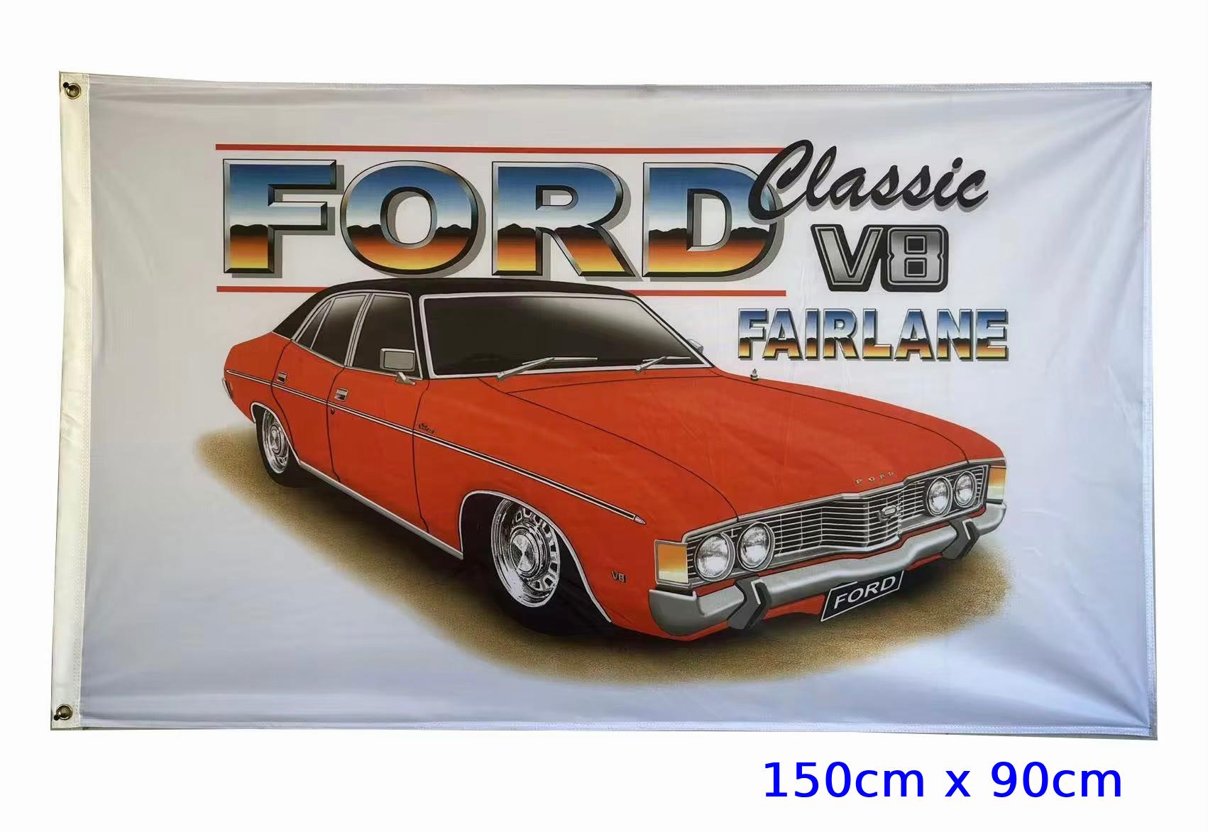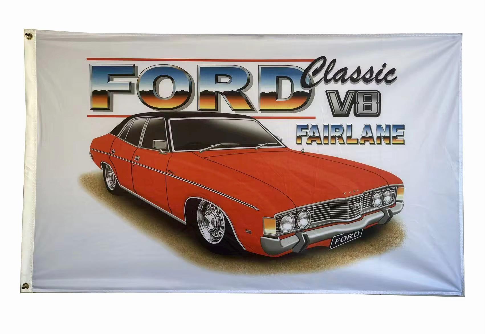 Brand new and never flown Ford ZF Fairlane Sedan RED flag/banner for sale. Flag measures 150cm x 90cm in size (approx) and is made from polyester (min. 110gsm material used).