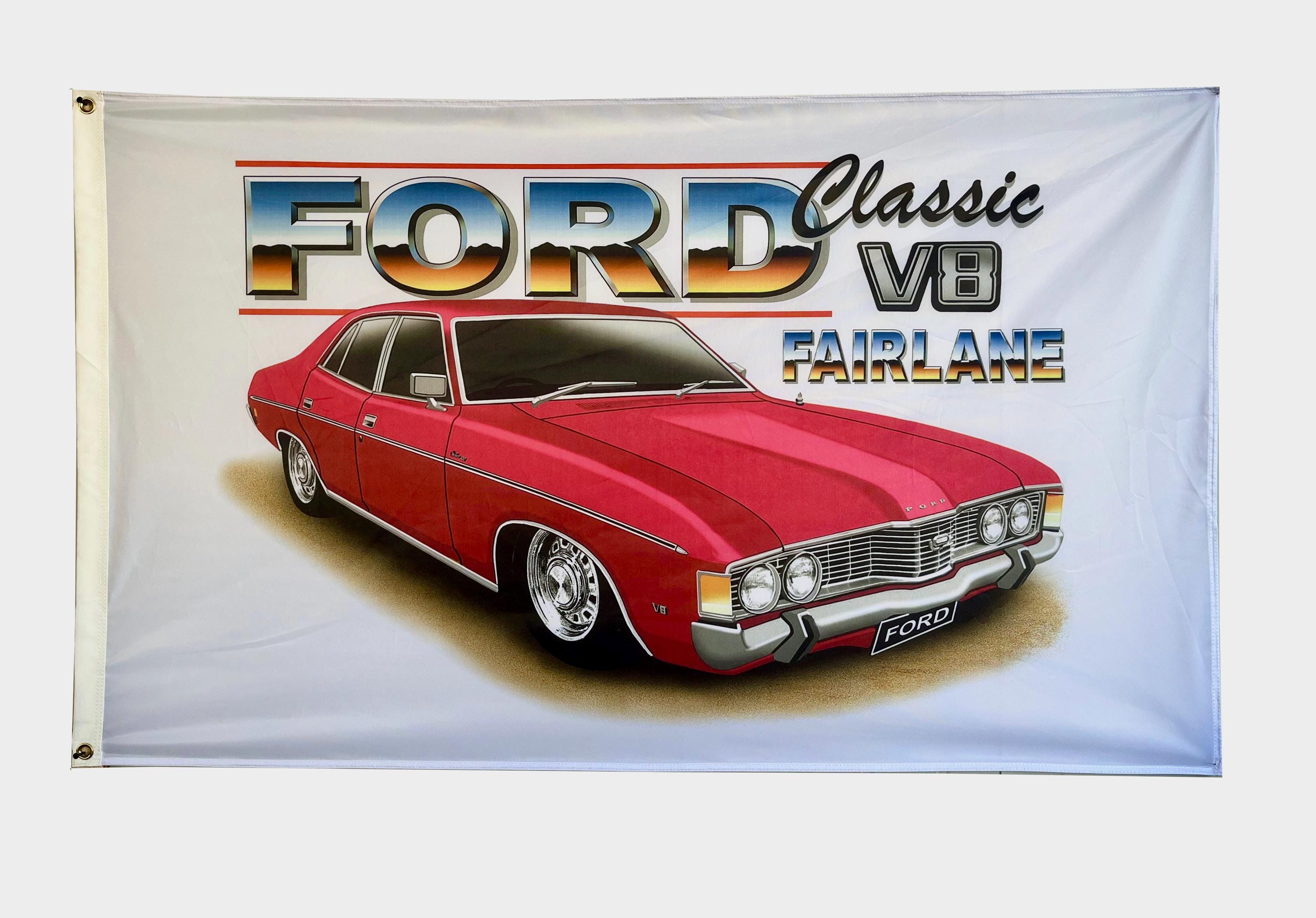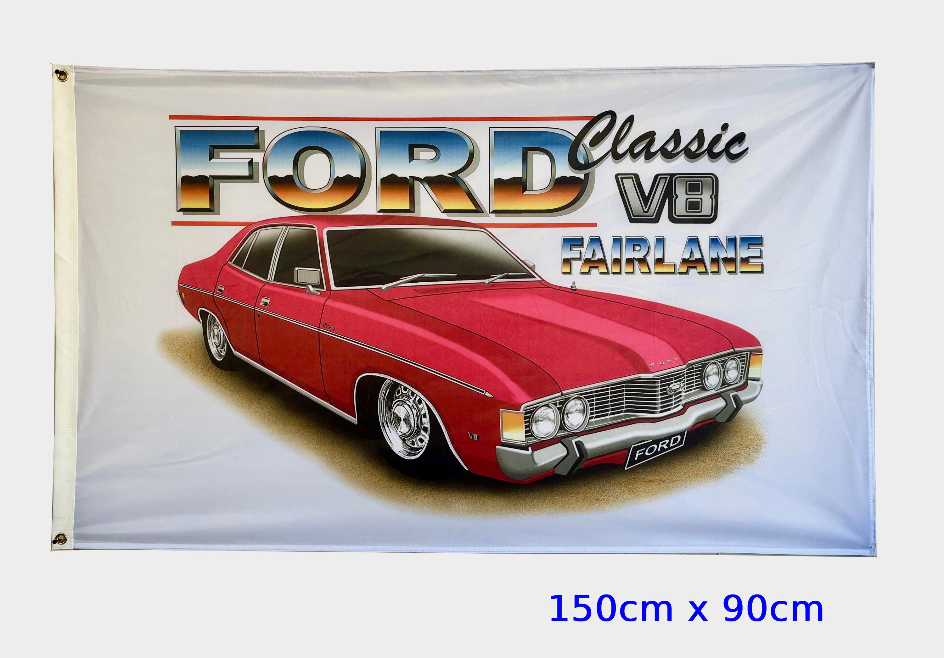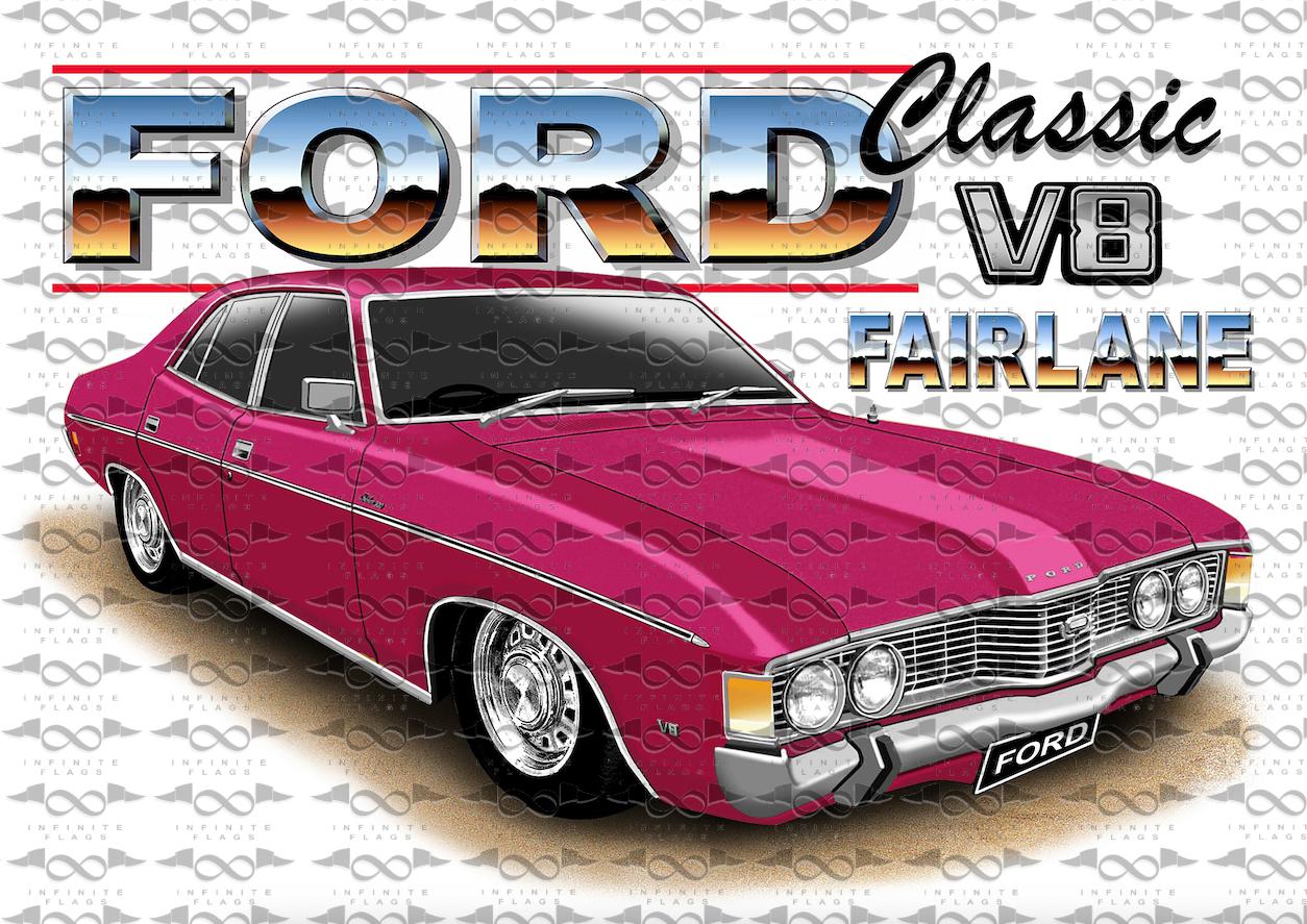 Brand new and never flown Ford ZF Fairlane Sedan PURPLE flag/banner for sale. Flag measures 150cm x 90cm in size (approx) and is made from polyester (min. 110gsm material used).