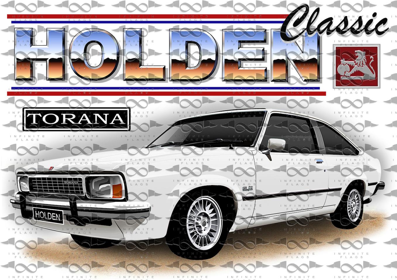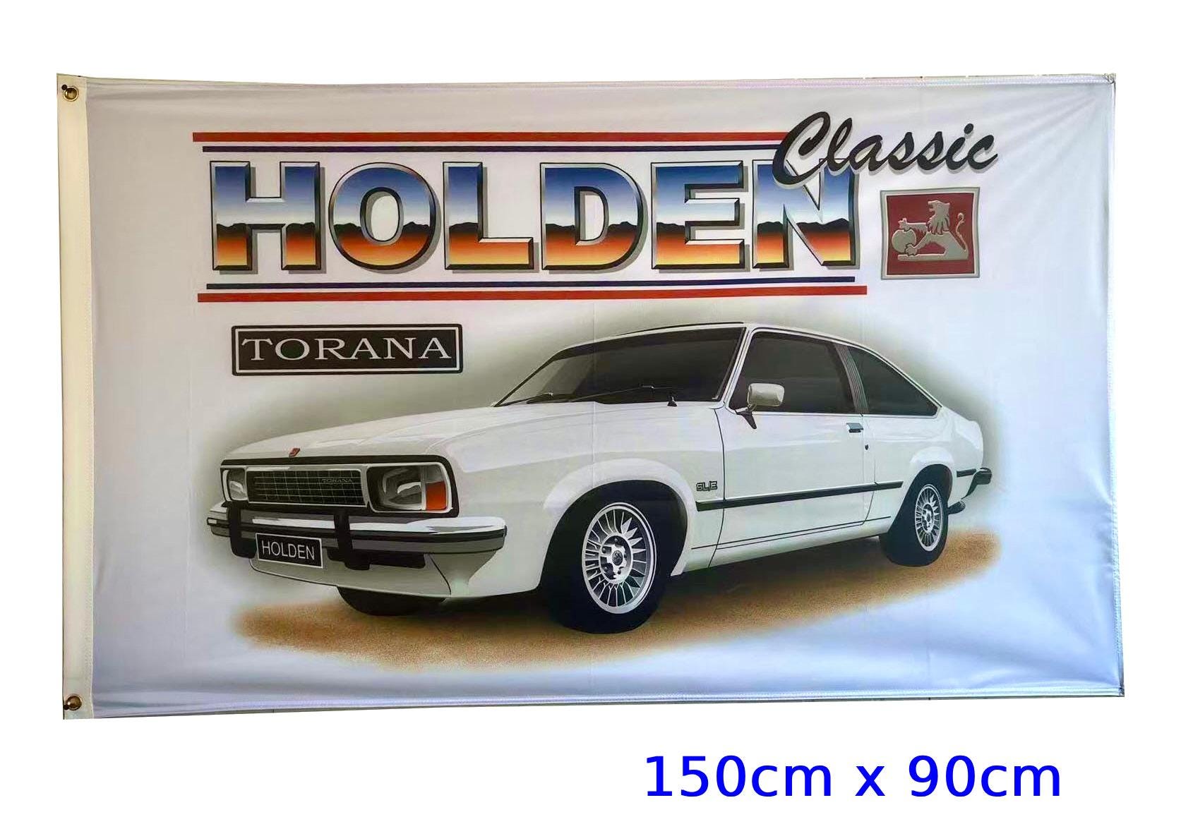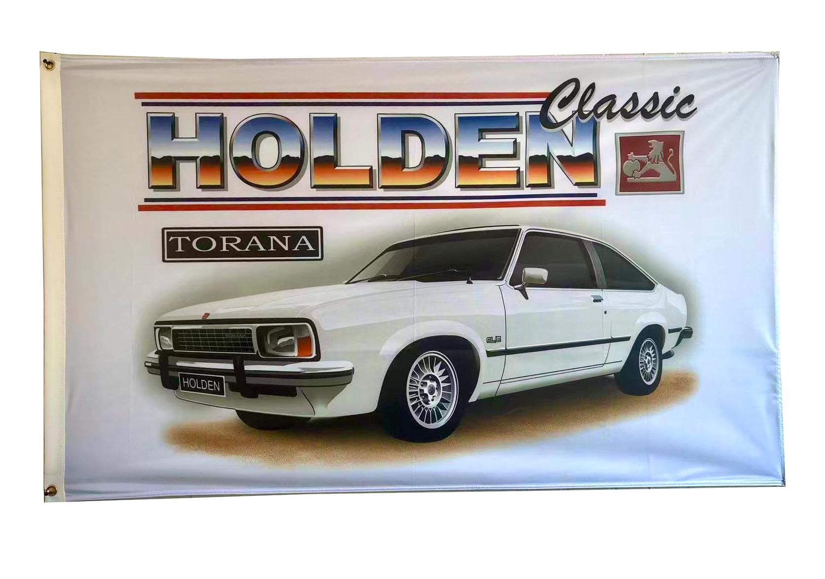Brand new and never flown Holden UC Torana Hatchback WHITE flag/banner for sale. Flag measures 150cm x 90cm in size (approx) and is made from polyester (min. 110gsm material used).