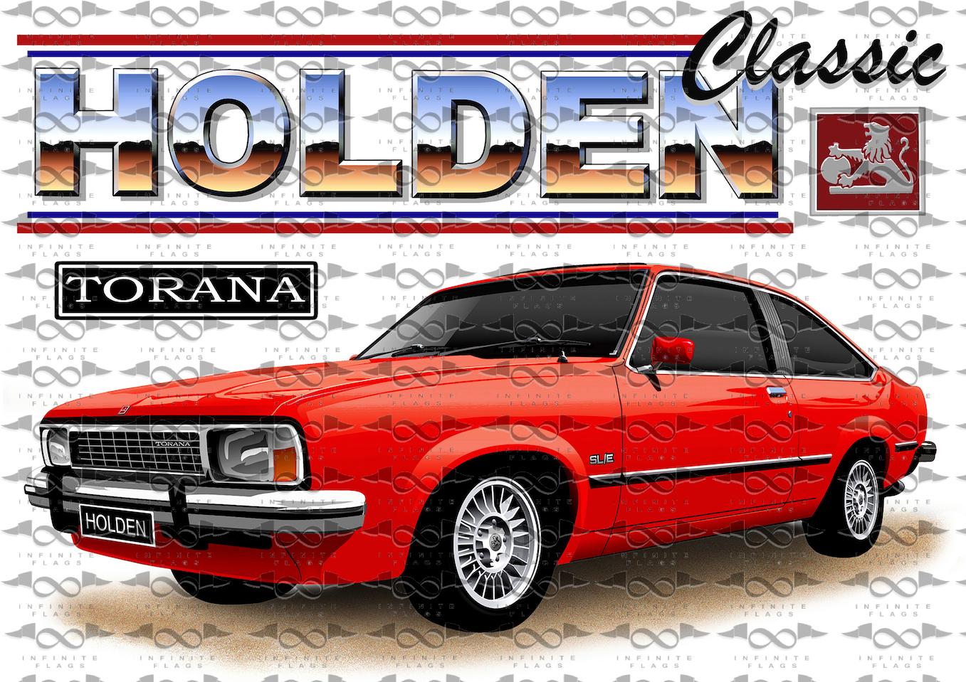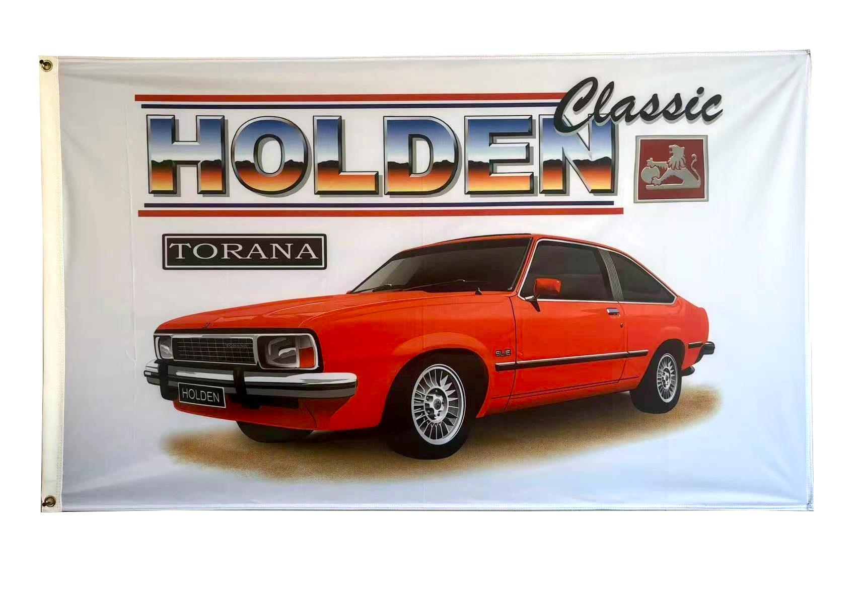 Brand new and never flown Holden UC Torana Hatchback RED flag/banner for sale. Flag measures 150cm x 90cm in size (approx) and is made from polyester (min. 110gsm material used).