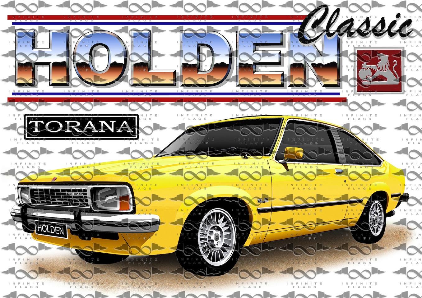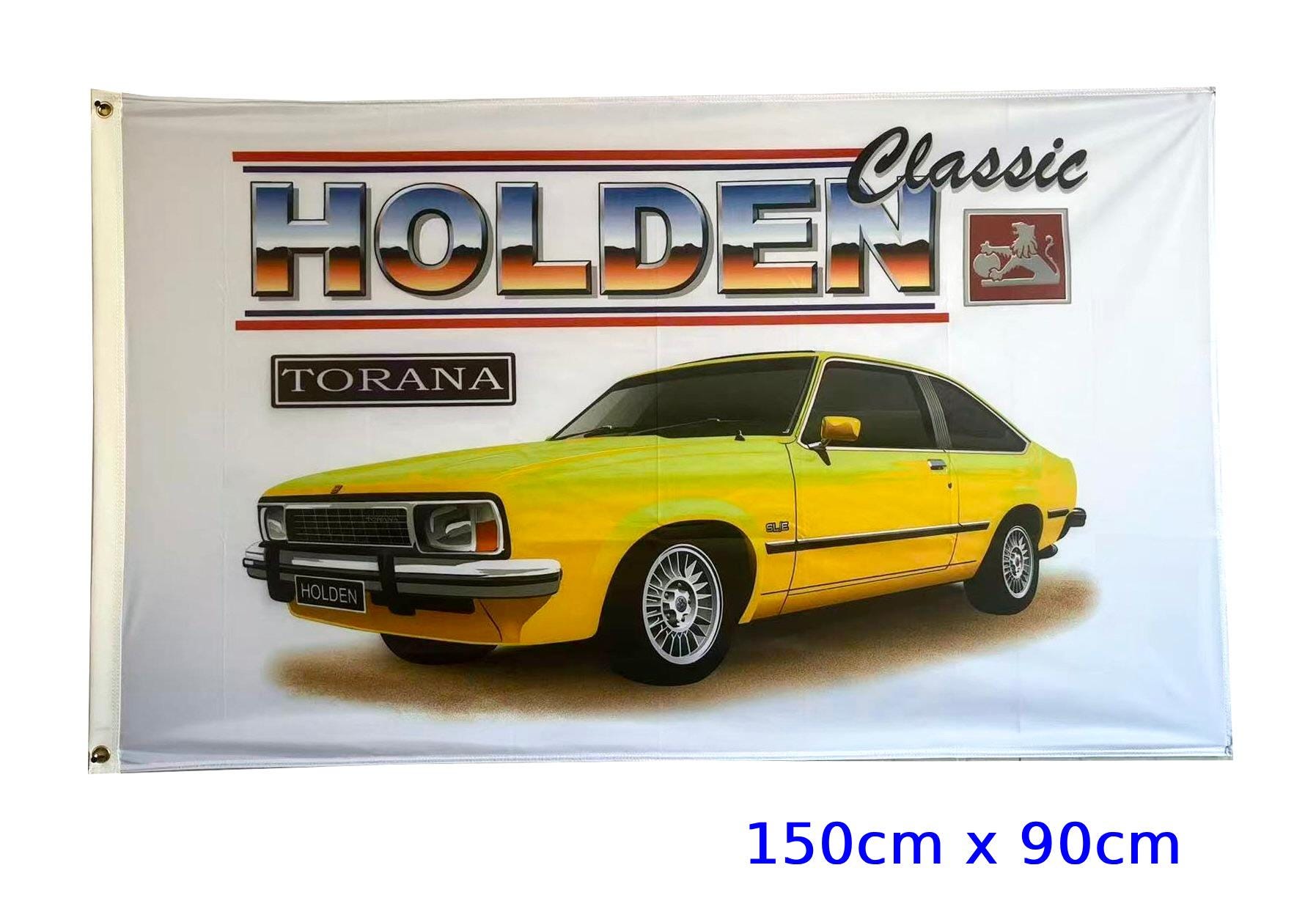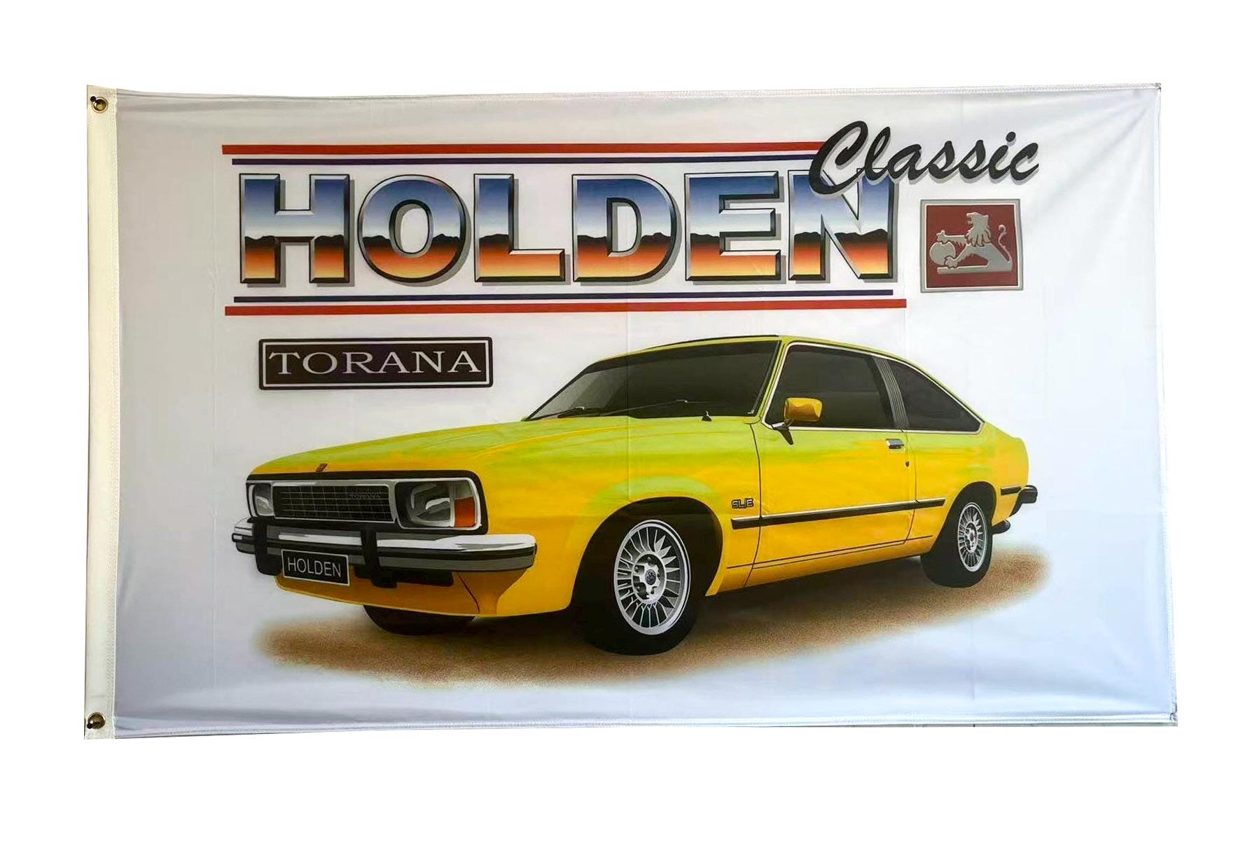 Brand new and never flown Holden UC Torana Hatchback YELLOW flag/banner for sale. Flag measures 150cm x 90cm in size (approx) and is made from polyester (min. 110gsm material used).