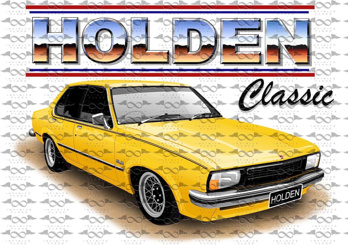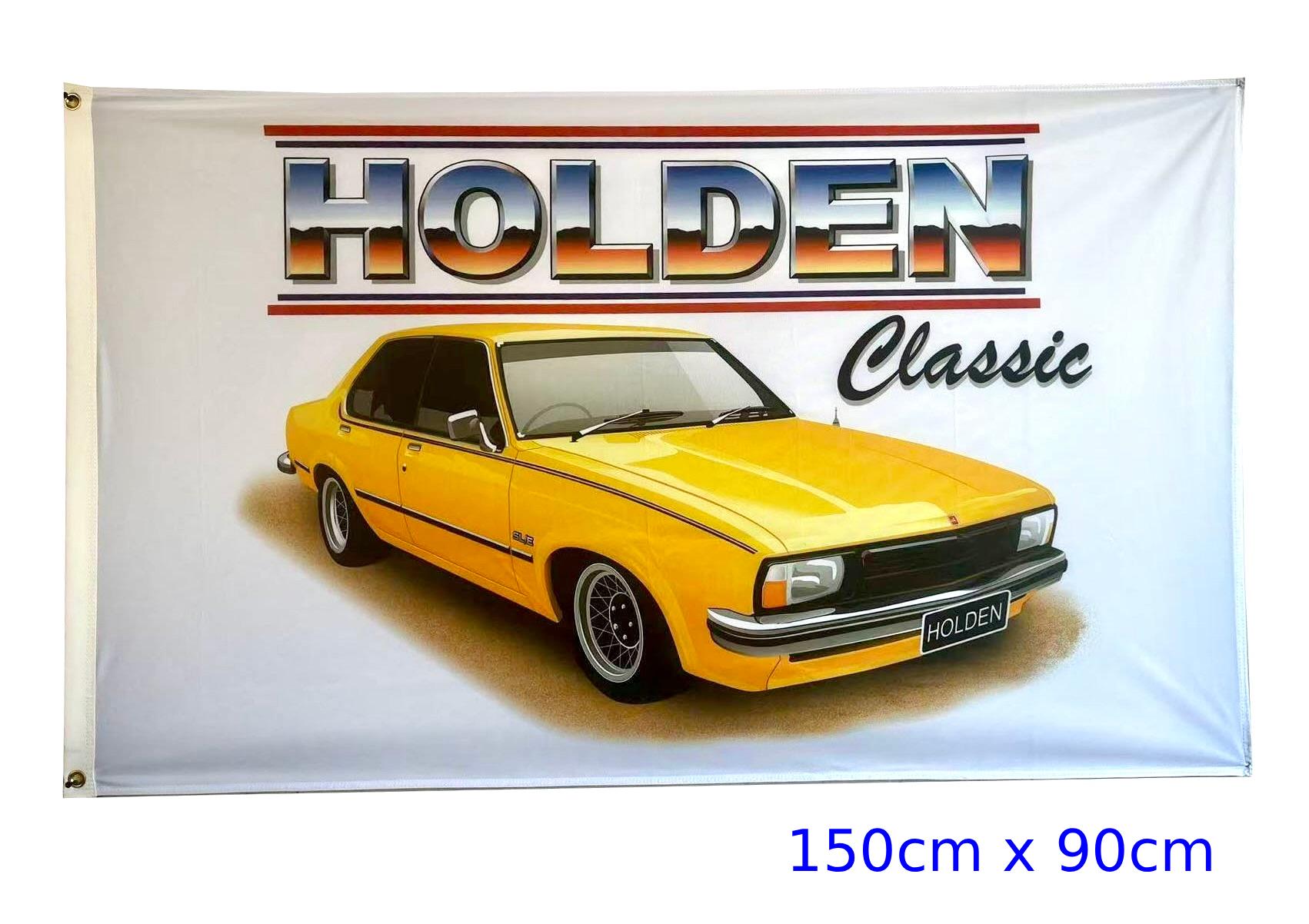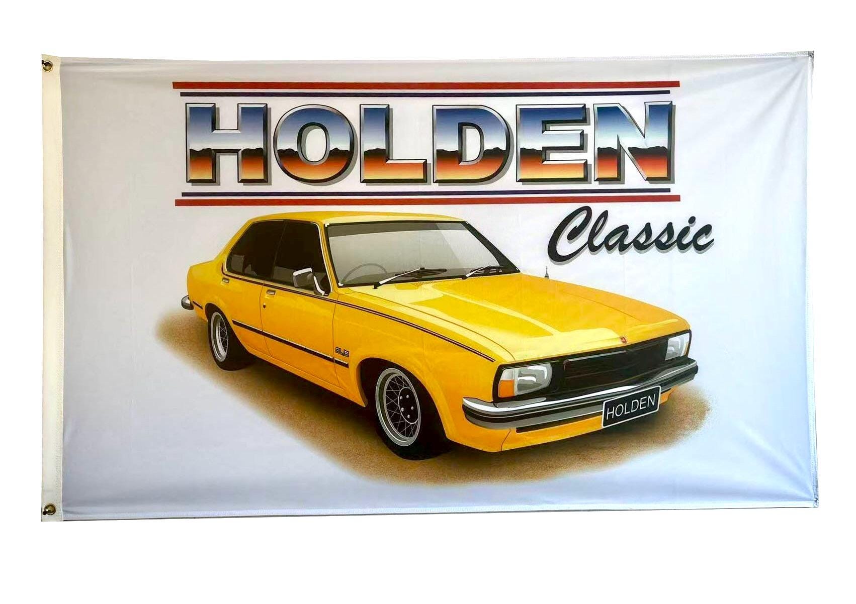 Brand new and never flown Holden UC Torana Sedan YELLOW flag/banner for sale. Flag measures 150cm x 90cm in size (approx) and is made from polyester (min. 110gsm material used).