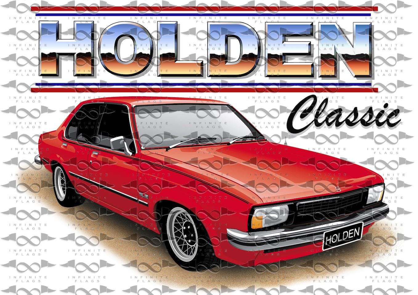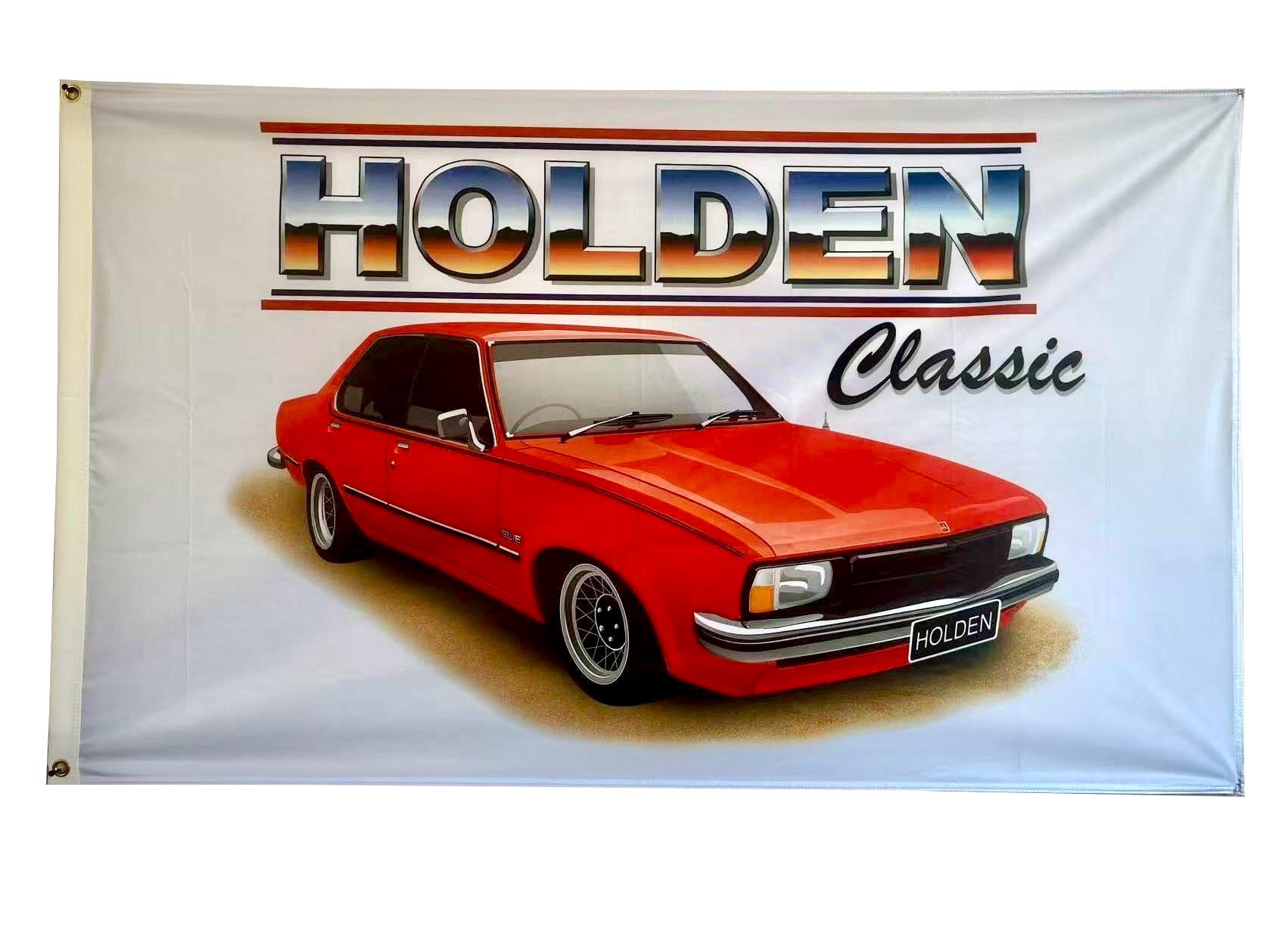 Brand new and never flown Holden UC Torana Sedan RED flag/banner for sale. Flag measures 150cm x 90cm in size (approx) and is made from polyester (min. 110gsm material used).