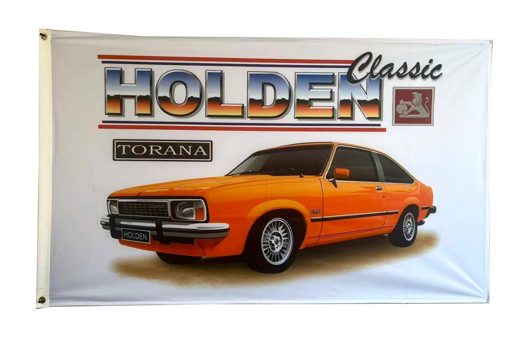 Brand new and never flown Holden UC Torana Hatchback ORANGE flag/banner for sale. Flag measures 150cm x 90cm in size (approx) and is made from polyester (min. 110gsm material used).