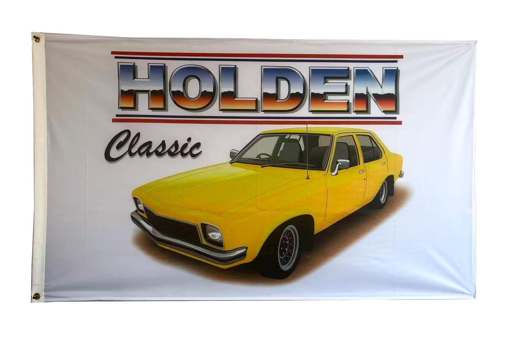 Brand new and never flown Holden LH Torana Sedan YELLOW flag/banner for sale. Flag measures 150cm x 90cm in size (approx) and is made from polyester (min. 110gsm material used).