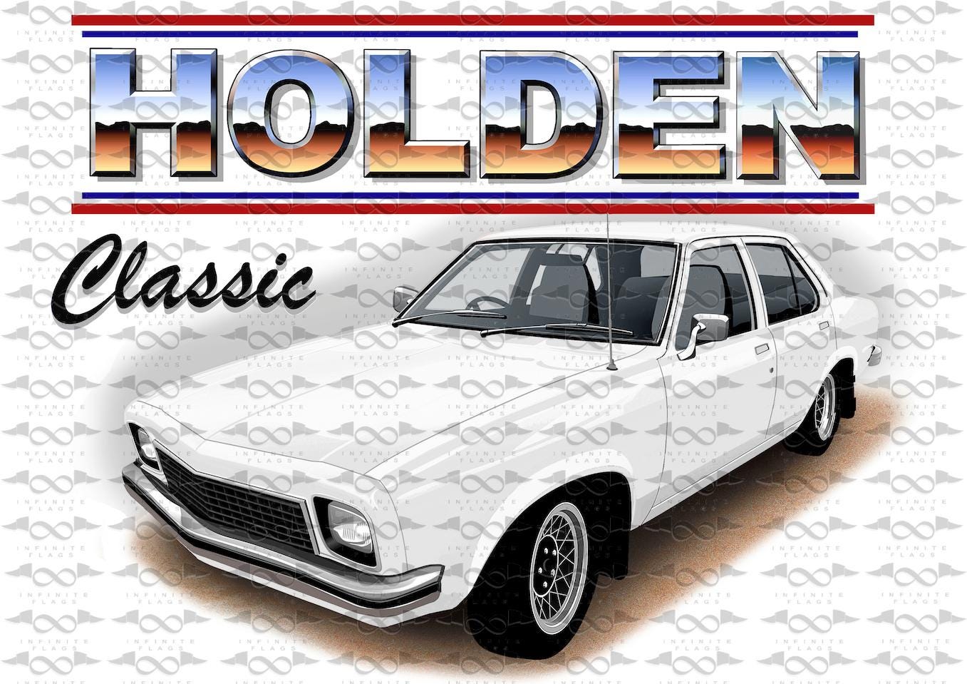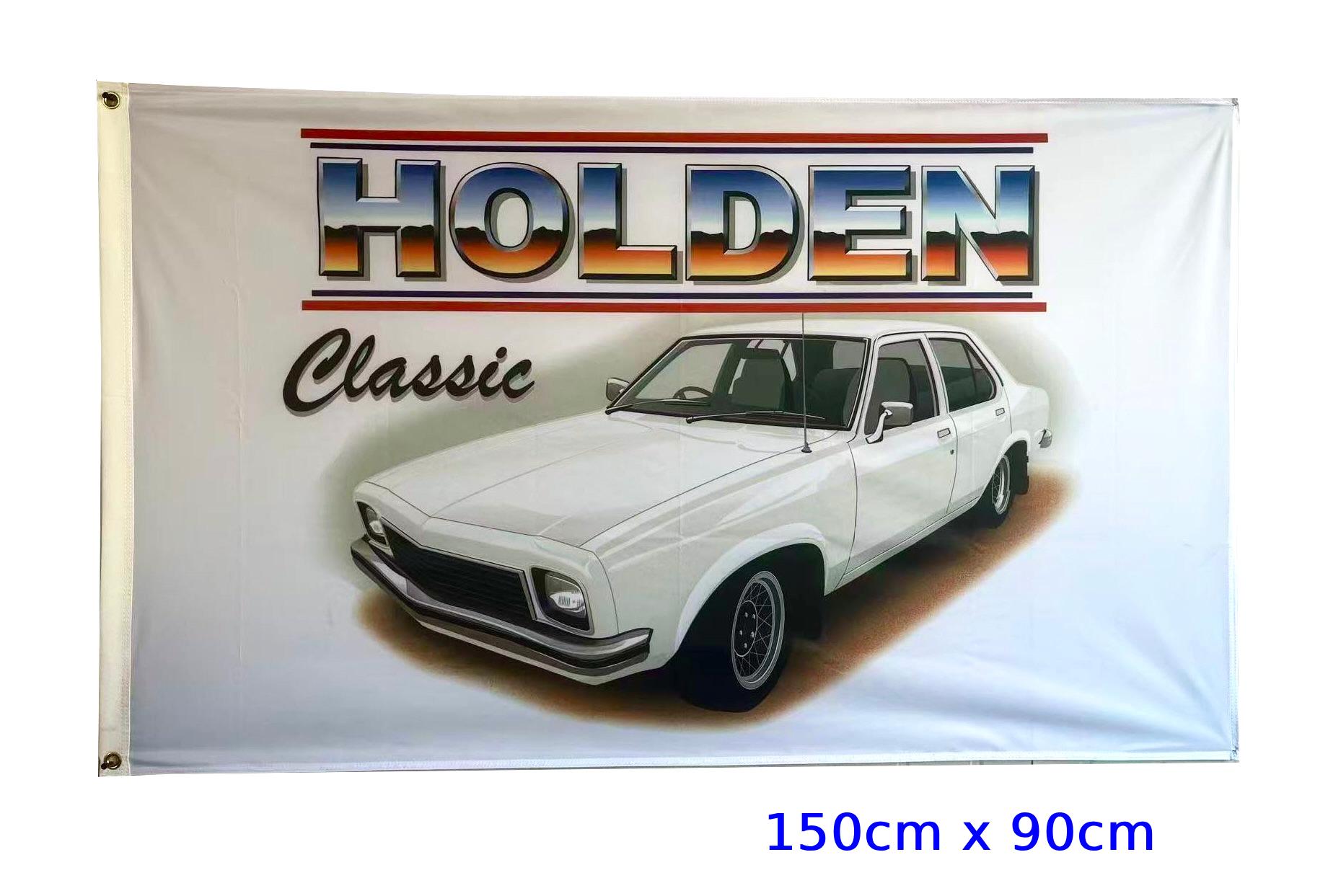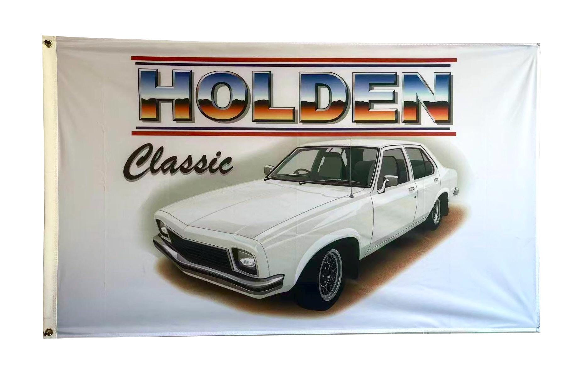 Brand new and never flown Holden LH Torana Sedan WHITE flag/banner for sale. Flag measures 150cm x 90cm in size (approx) and is made from polyester (min. 110gsm material used).
