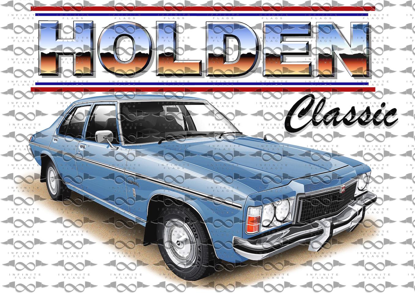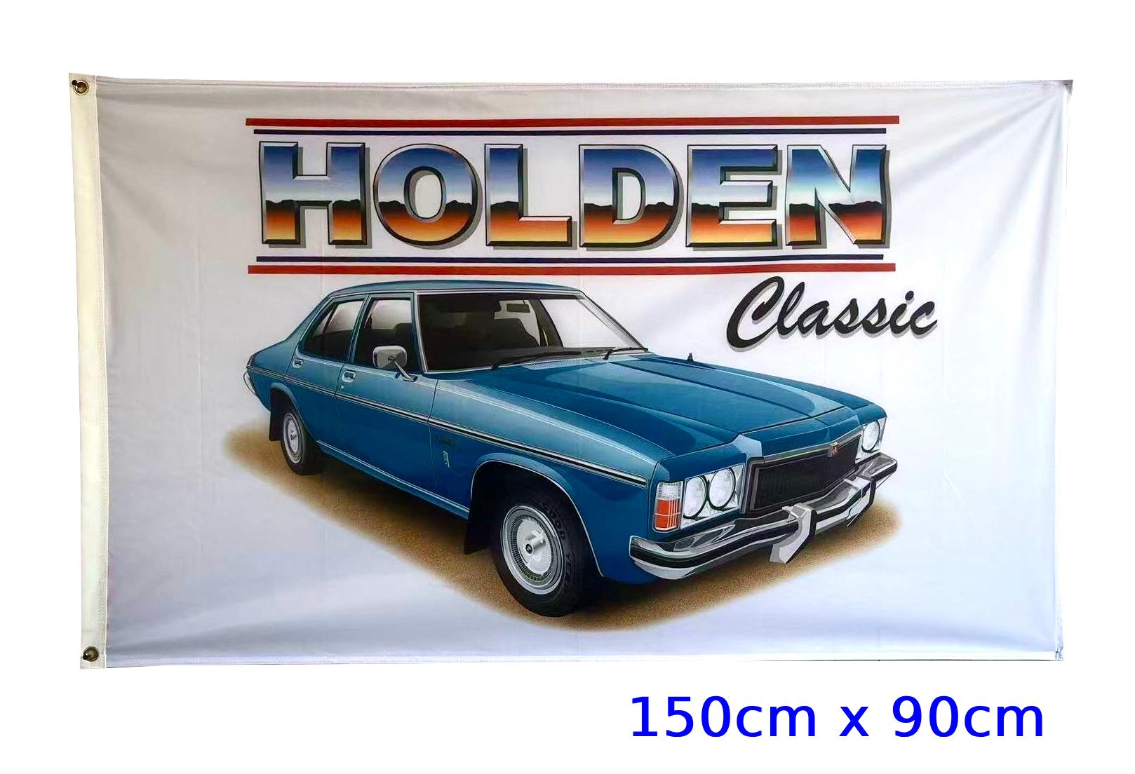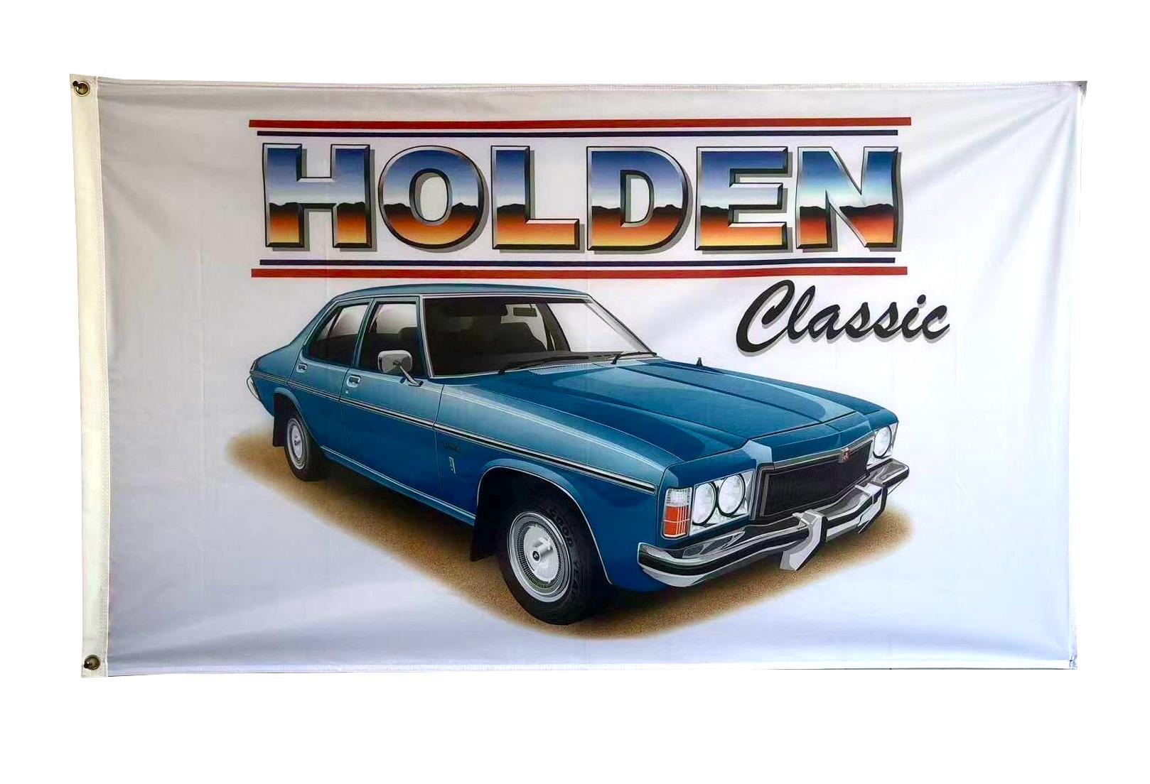 Brand new and never flown Holden HZ Premier Sedan BLUE flag/banner for sale. Flag measures 150cm x 90cm in size (approx) and is made from polyester (min. 110gsm material used).