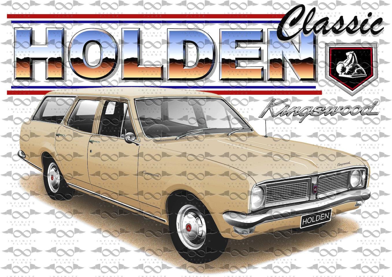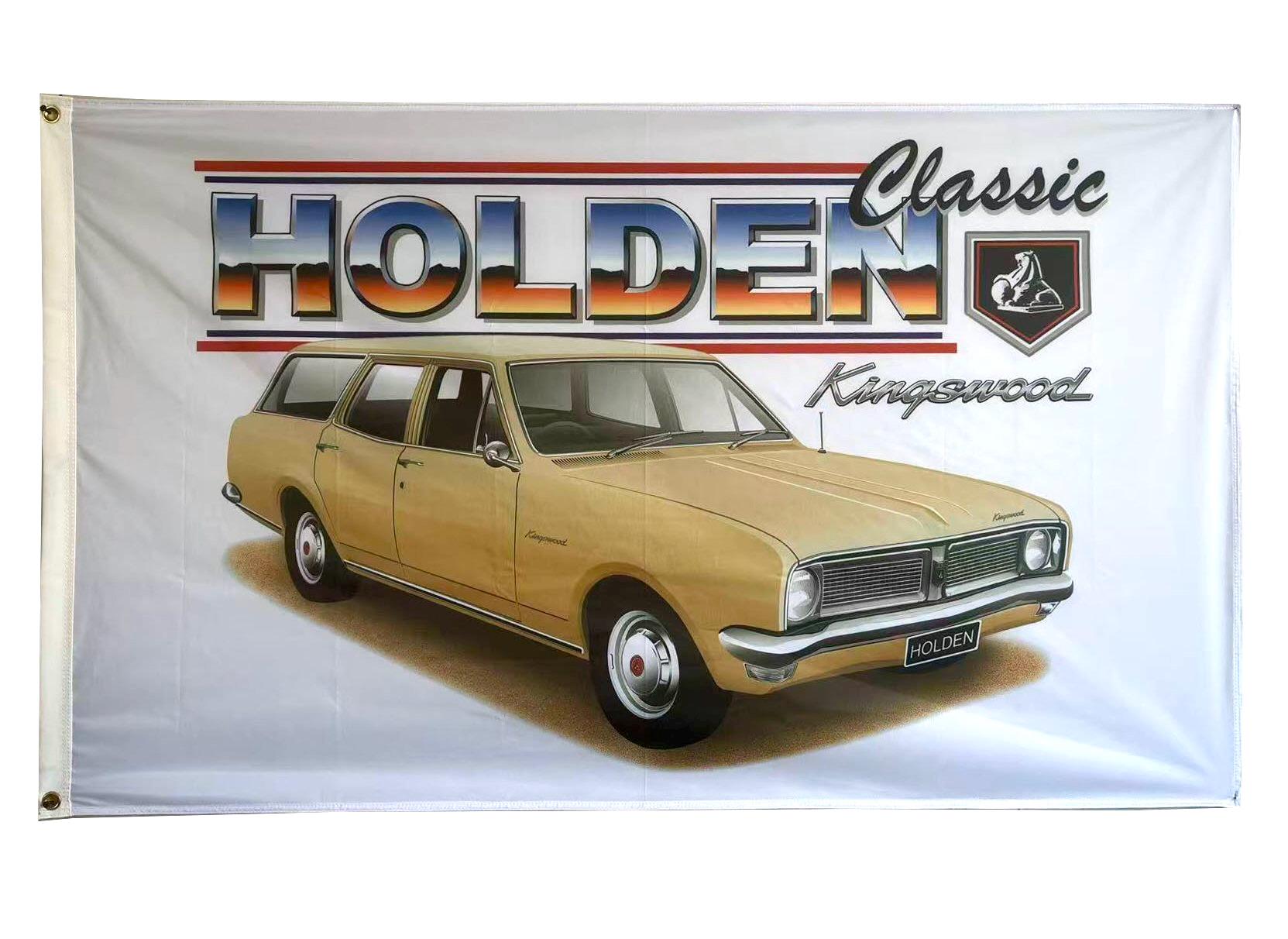 Brand new and never flown Holden HG Kingswood Station Wagon CREAM flag/banner for sale. Flag measures 150cm x 90cm in size (approx) and is made from polyester (min. 110gsm material used).