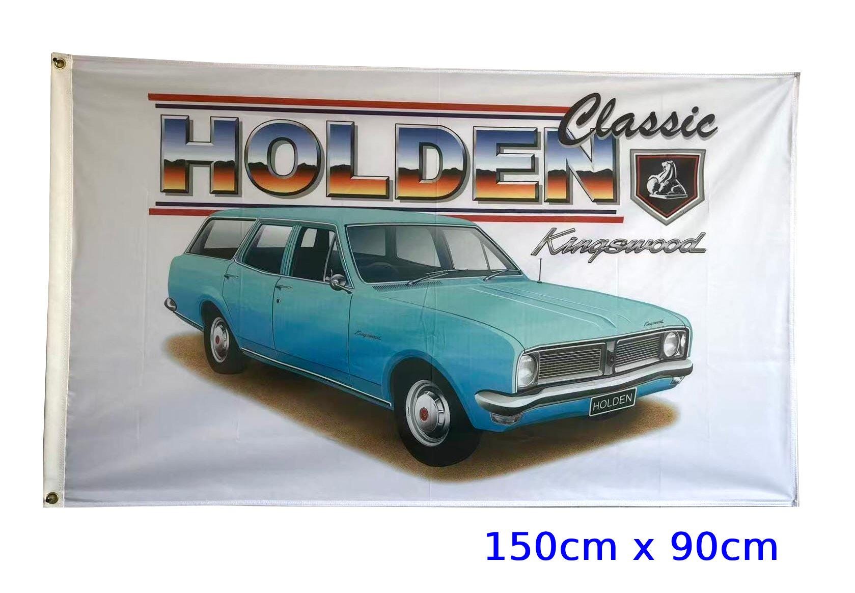 Brand new and never flown Holden HG Kingswood Station Wagon BLUE flag/banner for sale. Flag measures 150cm x 90cm in size (approx) and is made from polyester (min. 110gsm material used).