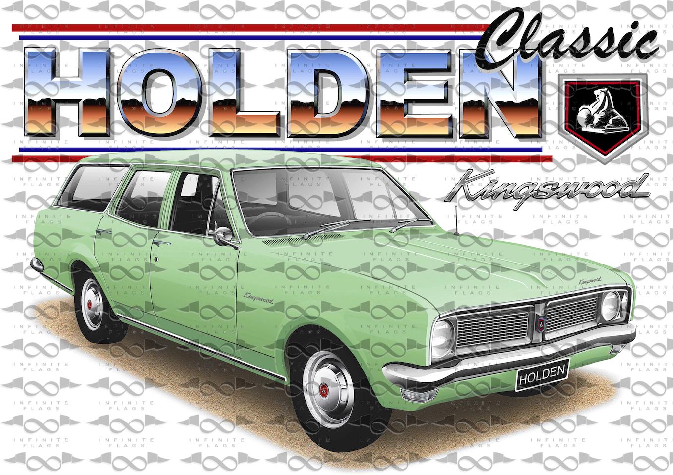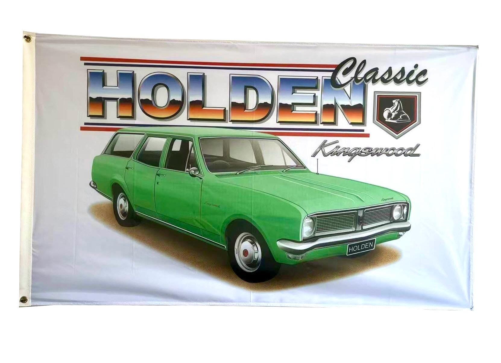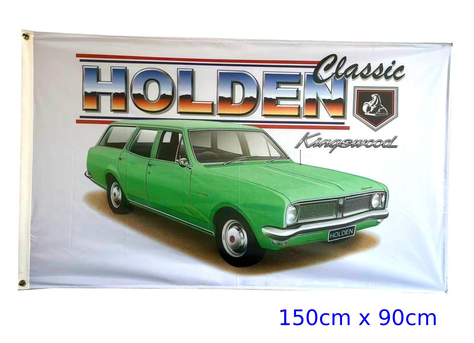 Brand new and never flown Holden HG Kingswood Station Wagon GREEN flag/banner for sale. Flag measures 150cm x 90cm in size (approx) and is made from polyester (min. 110gsm material used).