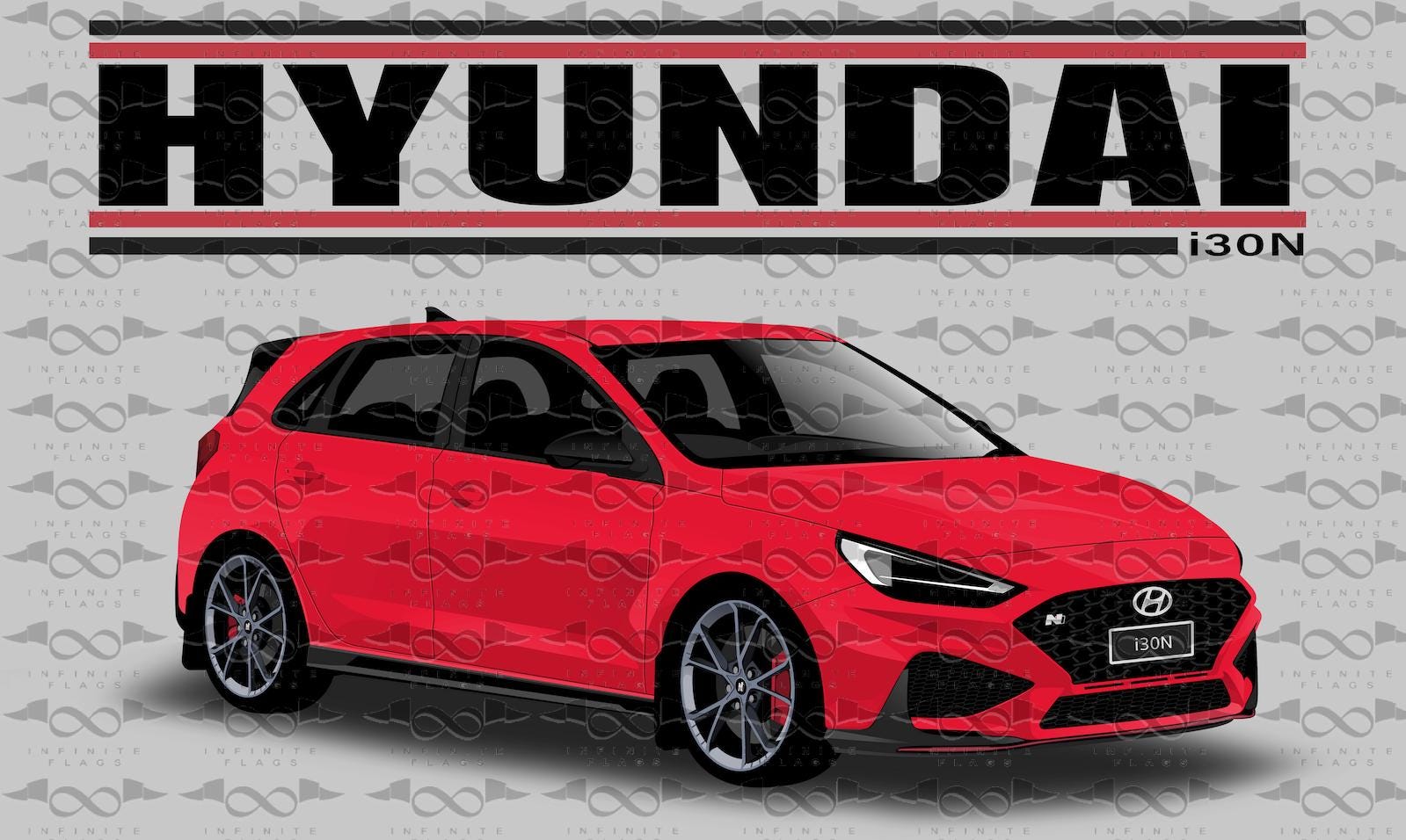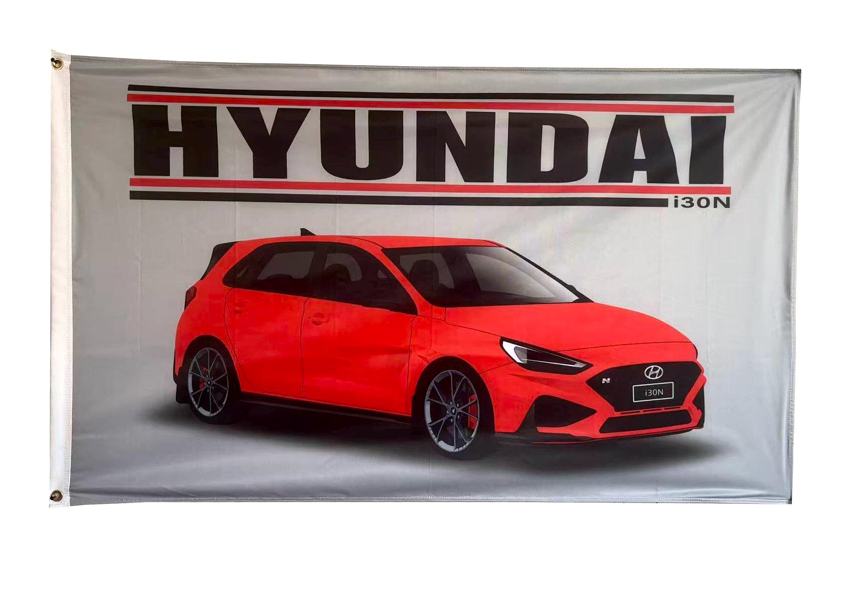 Brand new and never flown Hyundai i30N 5 Door Hatch RED flag/banner flag/banner for sale. Flag measures 150cm x 90cm in size (approx) and is made from polyester (min. 110gsm material used).